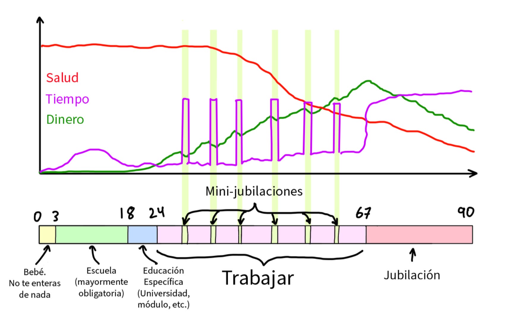De acuerdo a mi estilo de vida y mis intereses, la solución que mejor me encajó es plantear mi vida laboral intercalando mini-jubilaciones.