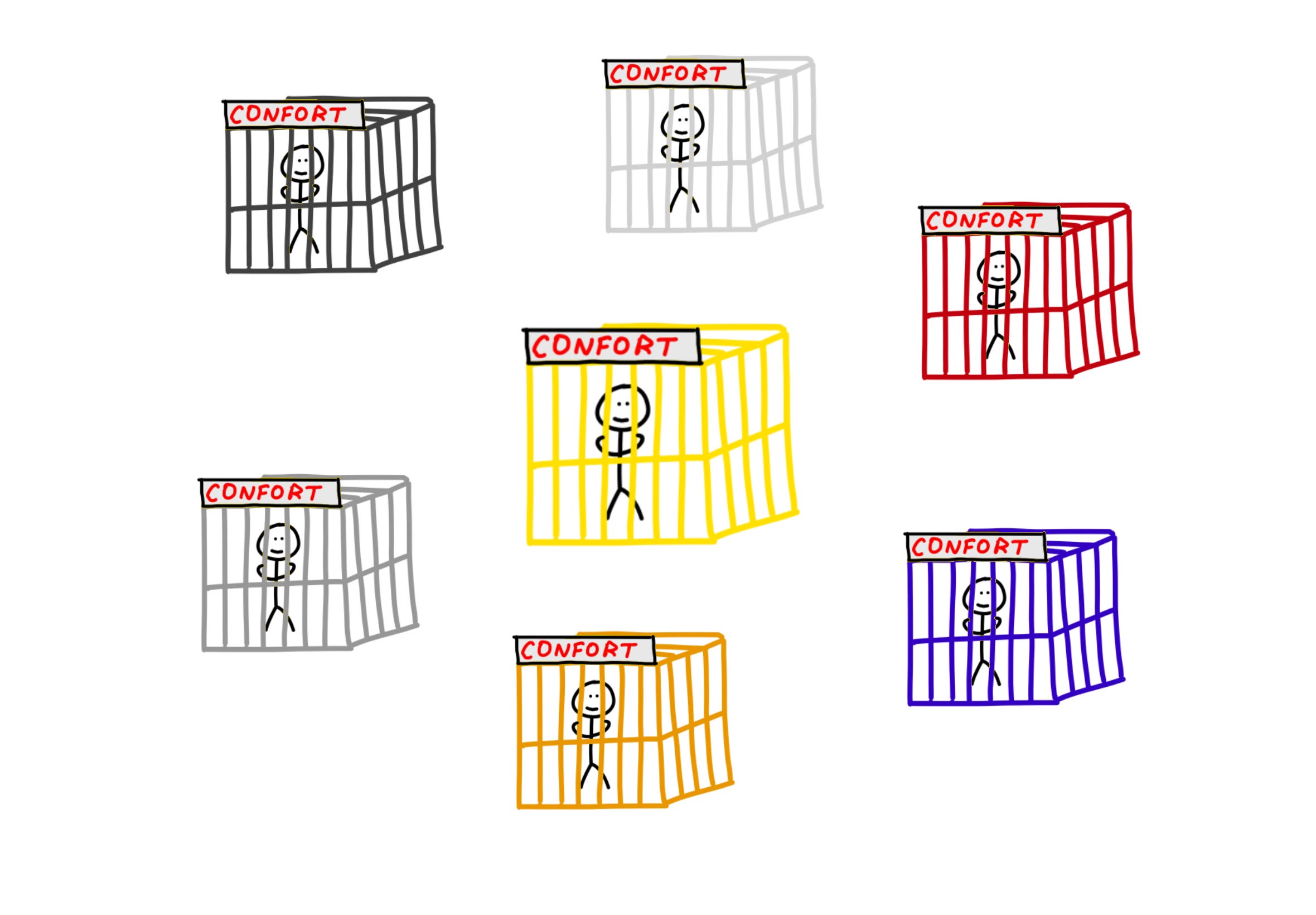 Salir de esa situación es muy difícil. El día a día te arrastra sin pena ni gloria. Tu jaula es cómoda, y todo el mundo a tu alrededor está en una situación parecida (o peor). Por agravio comparativo... ¡Incluso quizás estás muy bien! Pues palante, ¿no?