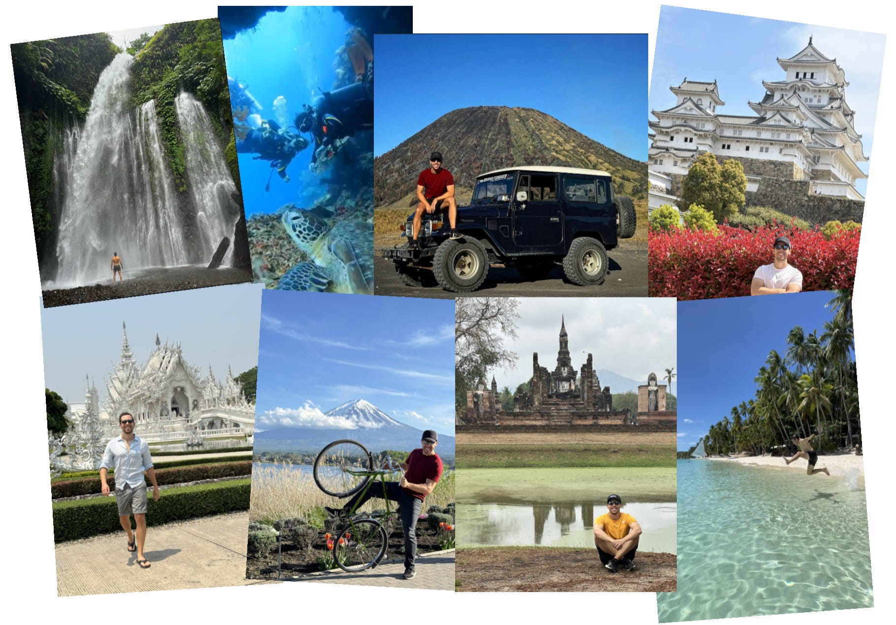 He vivido experiencias increíbles y conocido a gente espectacular en sitios como Brasil, Ecuador, Colombia, Costa Rica, Estados Unidos, Tailandia, Japón, Filipinas o Indonesia.