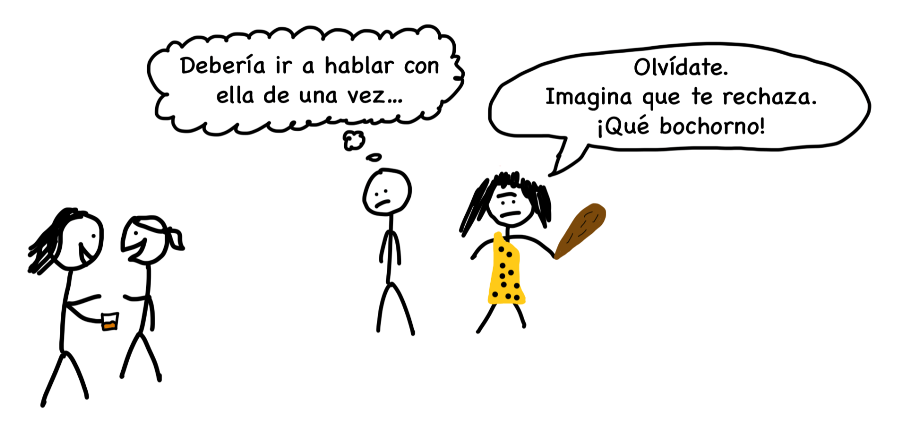 Dale forma en tu mente al Troglodita Social. Tenlo presente e imagínatelo dando con la porra a tu Voz Interior cuando te asalten las dudas por incomodidad social. Si te ha gustado el artículo, guárdalo y revísalo de vez en cuando para reforzarte.