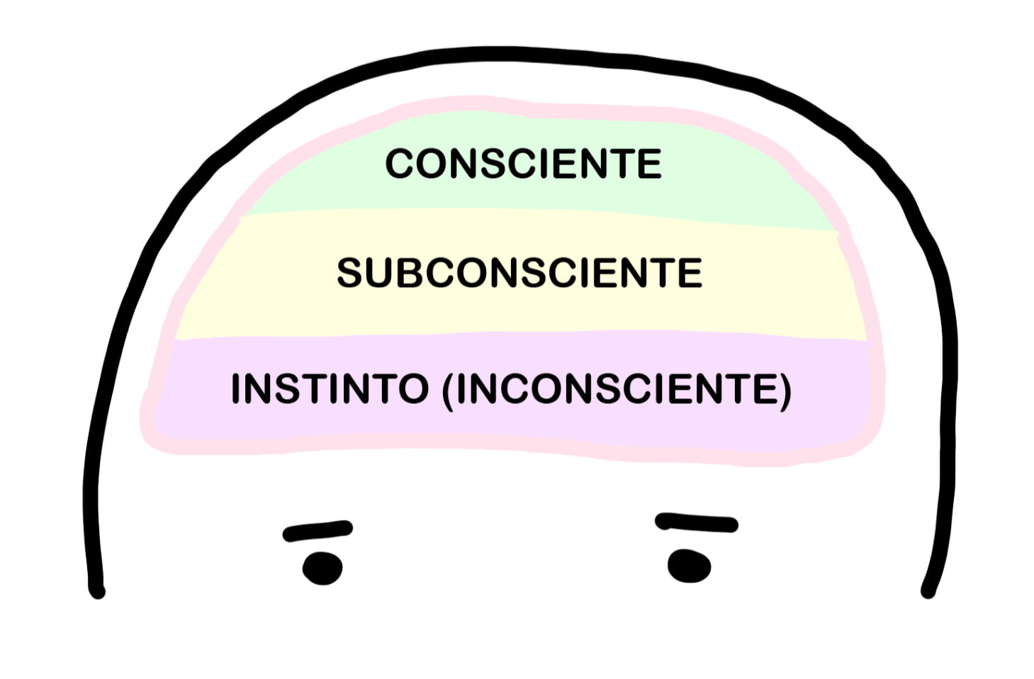 Instinto (inconsciente): Es la memoria genética. Lo que miles de años de evolución han grabado en tus genes. Lo que le hace a un bebé mamar de forma automática, lo que hace que te atraiga otro miembro de tu especie o que el olor de la comida te haga salivar.