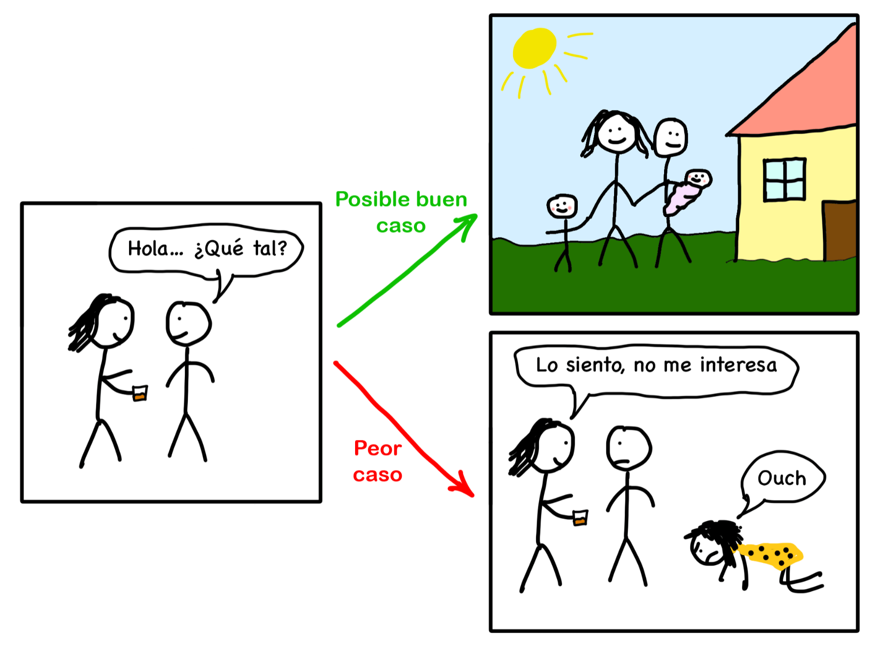 Esta situación del ejemplo es claramente asimétrica: poco que perder, mucho que ganar. Y pese a que de forma racional sabemos que lo peor que puede pasar es un «no», sentimos un miedo que nos supera y que evita que nos acerquemos.